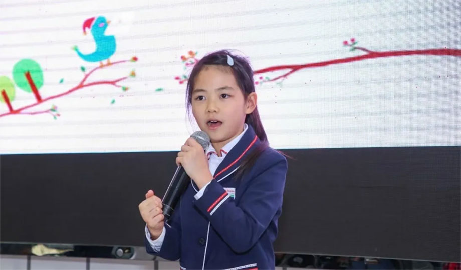 记得一年级刚入读,第一个UOI探究主题结题的时候,老师推荐Emma担任结题展的主持人。尽管那时的Emma连字都没认识多少,就已经在用心地背自己的主持稿了。回到家,Emma就告诉妈妈,自己长大了想做一名主持人,在后面的学习中,Emma也成功地凭借自己的实力竞选上了学校艺术节的主持人。