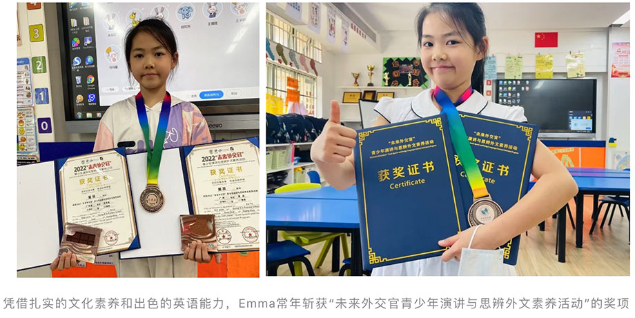 谈到Emma未来的成长和职业规划,妈妈说了四个词:尊重、相信、支持、鼓励。简单的四个字,既是态度也是行动。在妈妈看来,学校丰富的活动和展示机会不仅充分激发了Emma的内驱力也给了孩子很好的职业启蒙,因此,作为家长,她选择以兴趣为引导,以支持为力量,陪伴Emma在成长的道路上稳步前行。